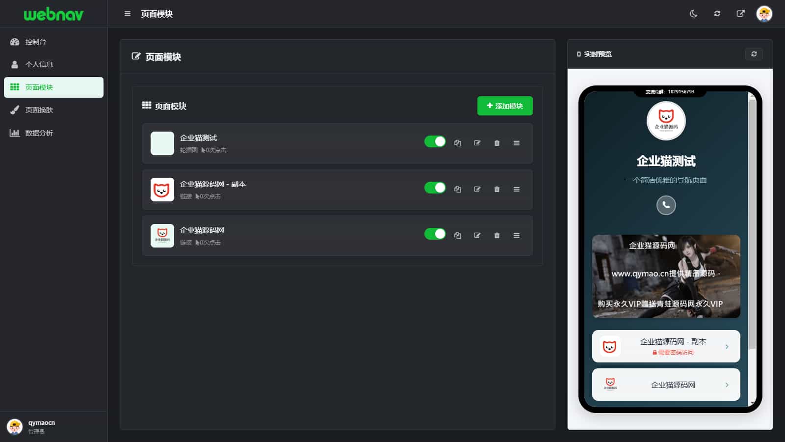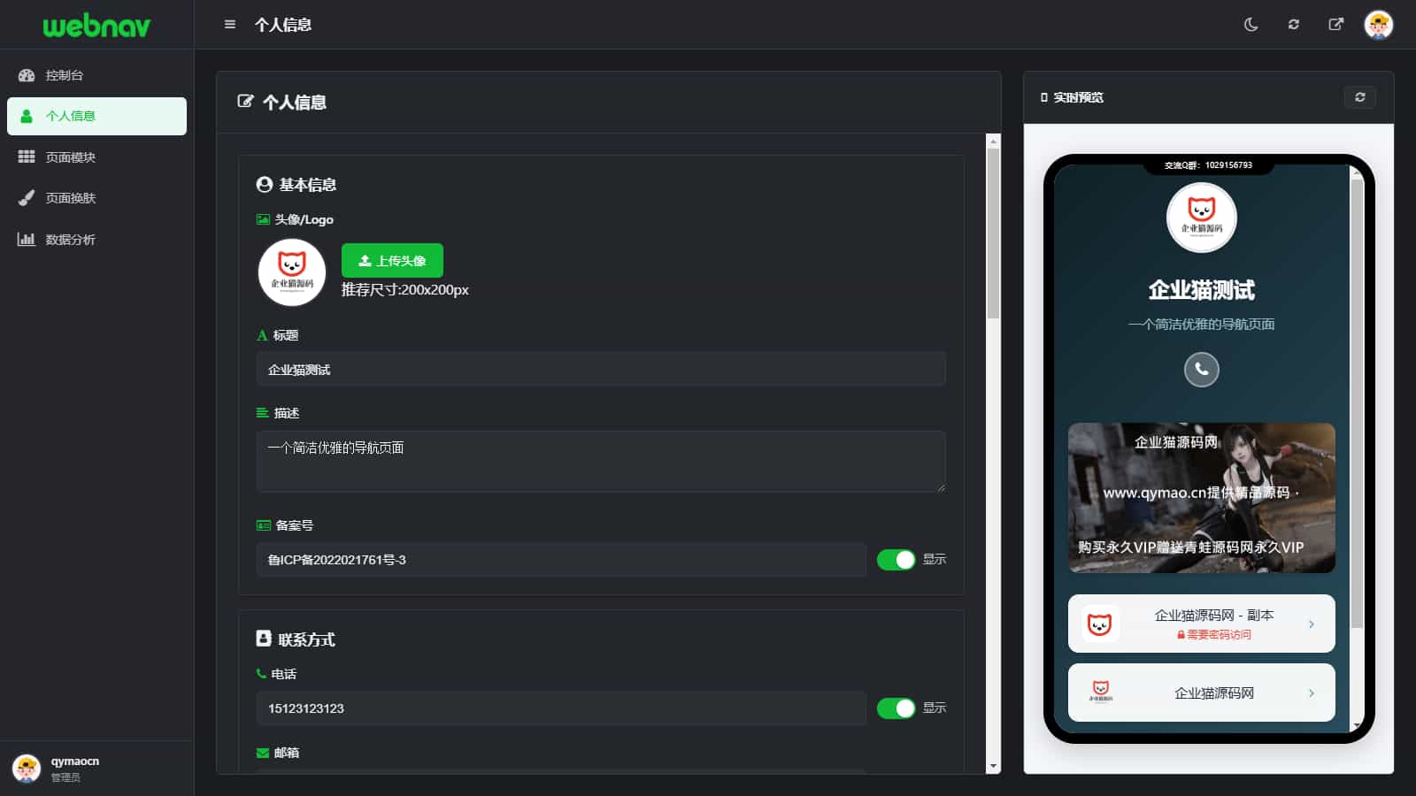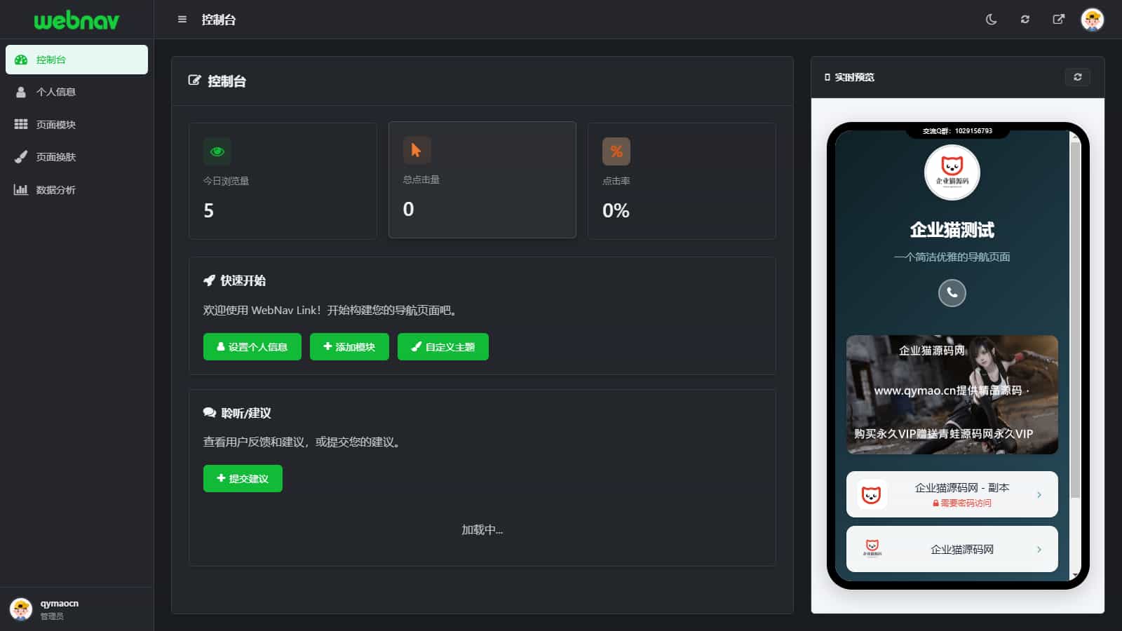 WebNav Link 是一款专注“个人主页 / 导航页”场景的轻量级个人导航系统,让你轻松打自己的专属导航页面。开箱即用,强调配置即所见,适合想快速上线个人主页、作品集或轻型聚合页的用户。