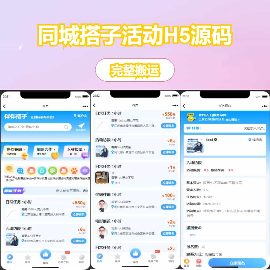 同城搭子活动组局H5系统源码-伴伴搭子系统源码