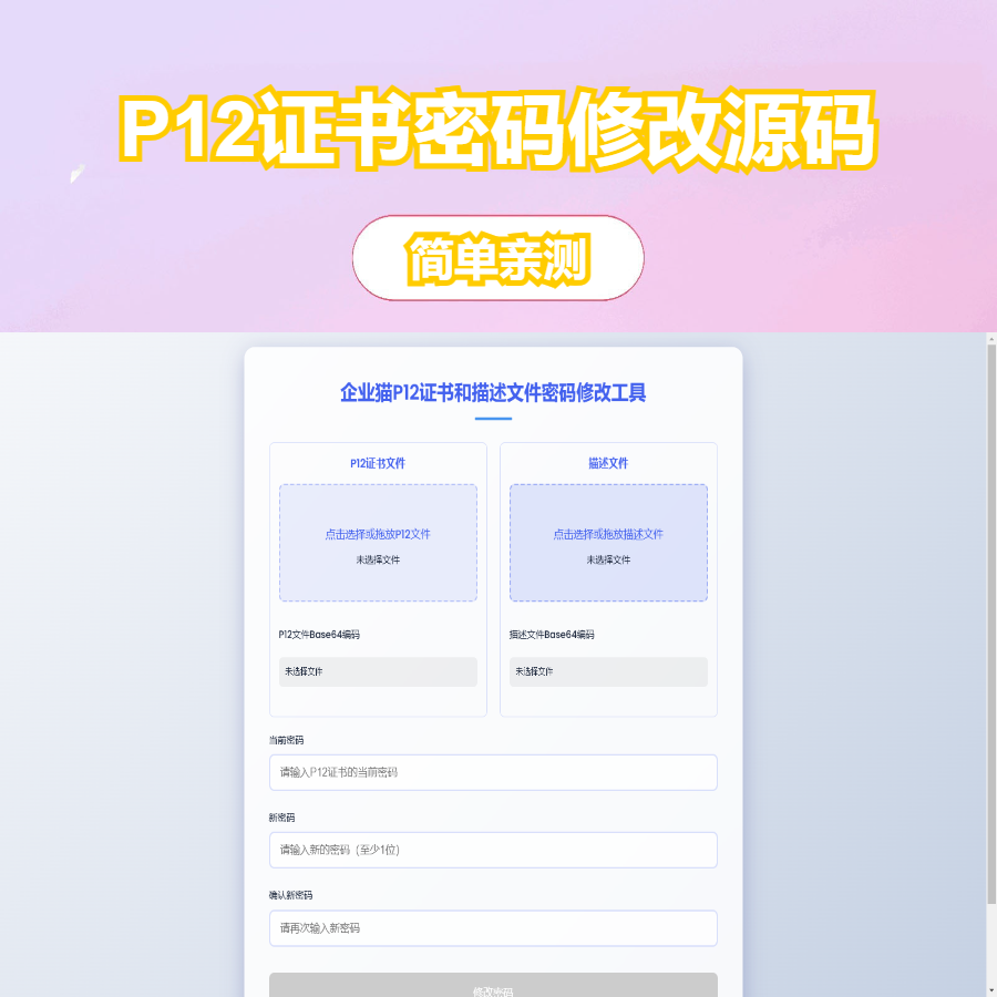 邻家铺子 HTML页面 P12证书密码修改HTML单页源码 https://www.webhub.top/14304/