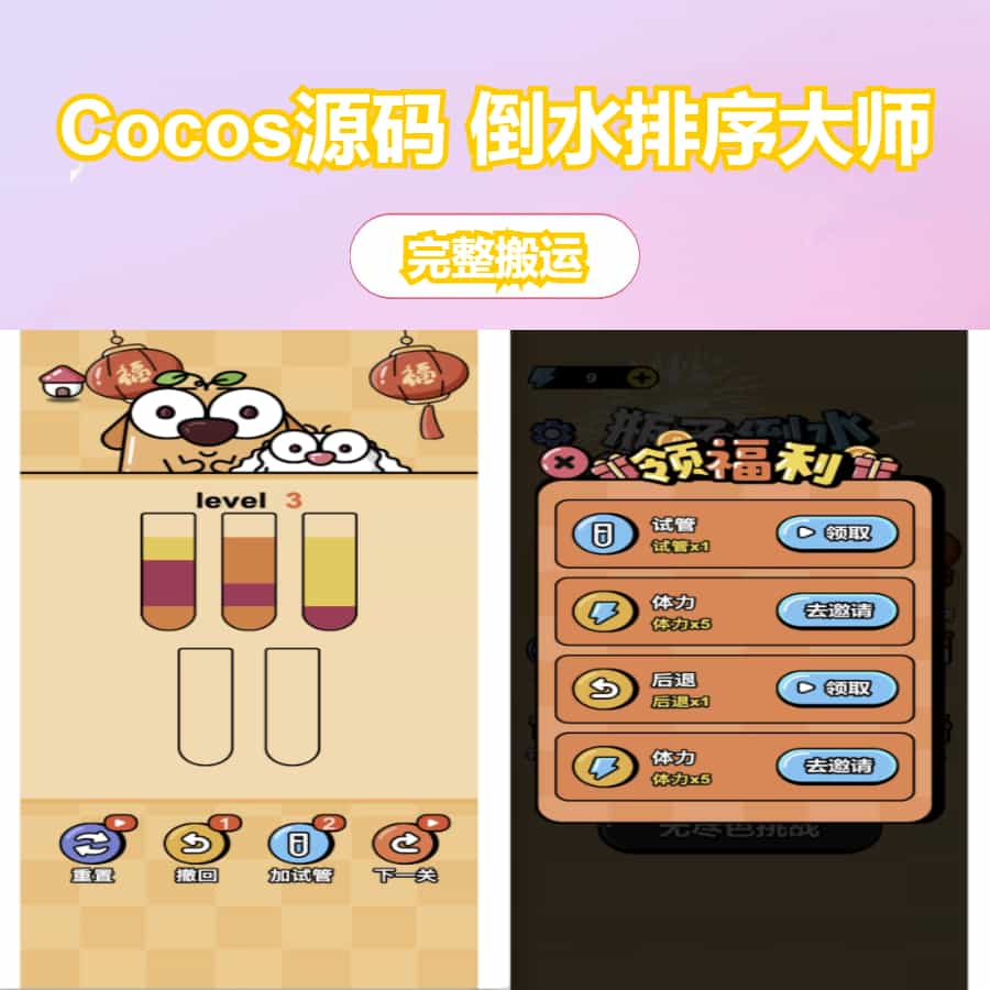 Cocos源码 倒水排序大师 Cocos creator游戏源码 2.4.13ts 可学习