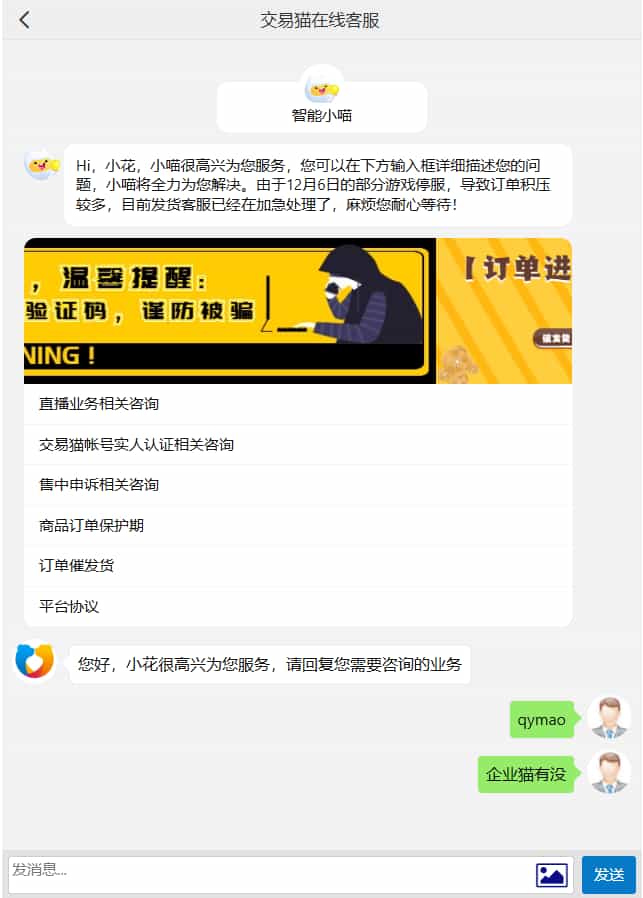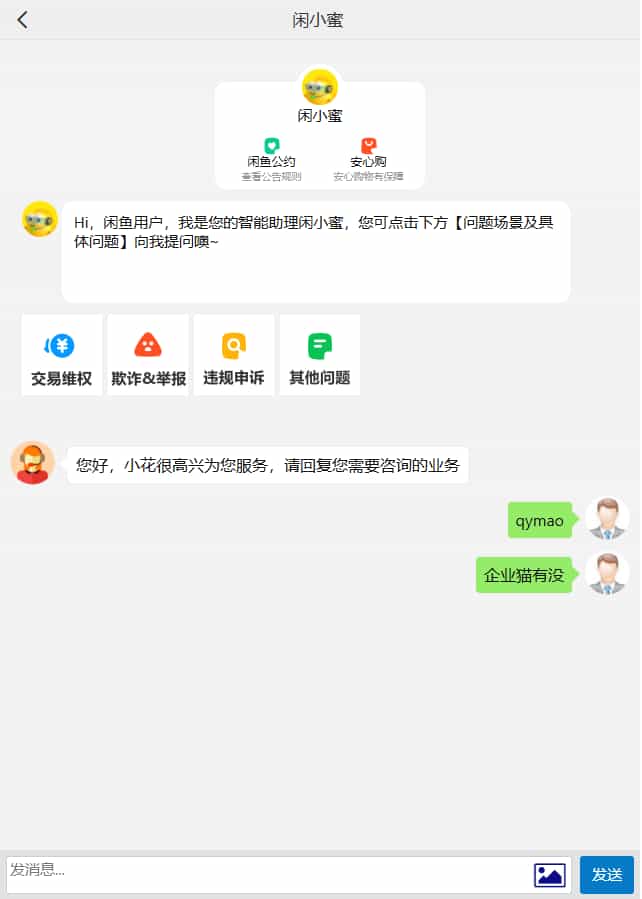 前端仿闲鱼、交易猫、转转客服,没对接任何第三方系统,php +MySQL源码!