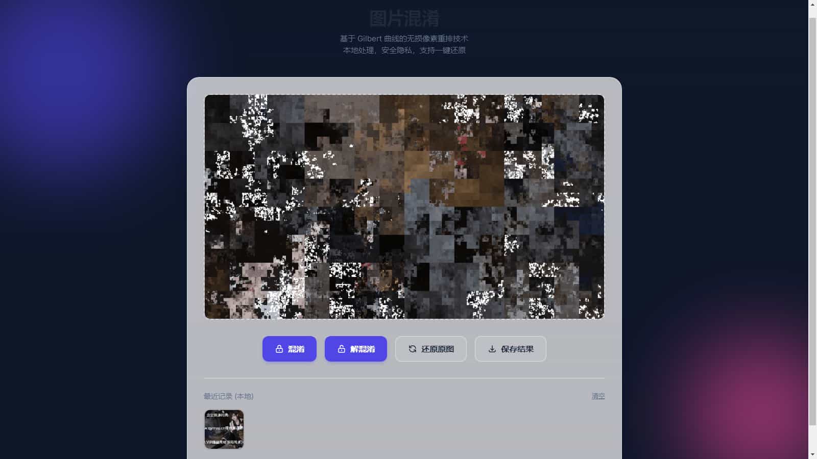 近期无聊在抖音部分视频的评论区看到了混淆图,突发奇想写一个可以混淆和解混淆的前端,可以用来轻加密图片。undefined 并且网上大多数解混淆生成的图片质量不是 100%,这个本地 html 可以无损混淆或解混淆图片,也省的在别人的网页上操作了。