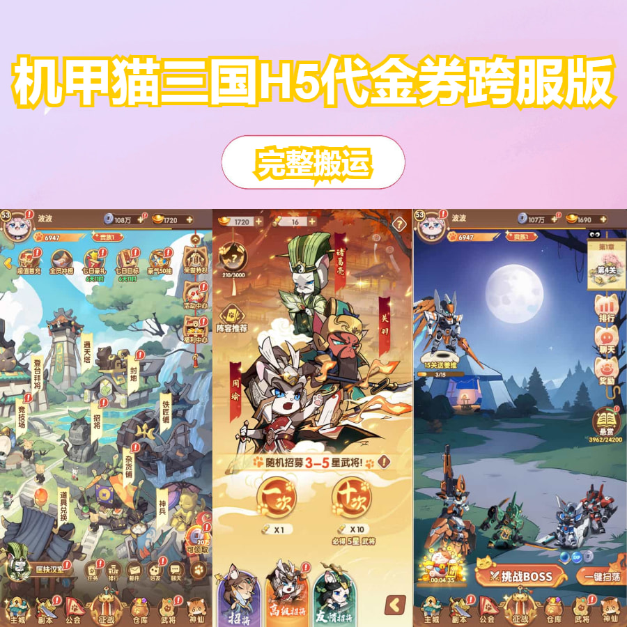 邻家铺子 H5游戏 卡牌回合手游【机甲猫三国H5代金券内购多区跨服版】最新整理单机一键即玩镜像端+Linux手工服务端+管理后台+运维后台+GM授权后台+简易安卓客户端+详细搭建教程+视频教程 https://www.webhub.top/14716/