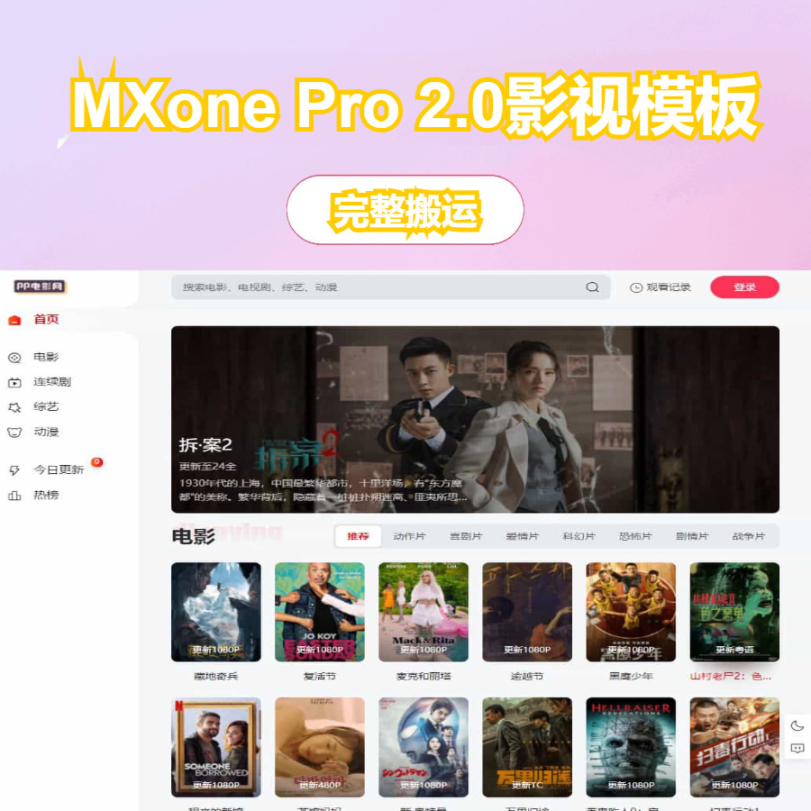 苹果CMS V10 MXone Pro 自适应2.0影视模板