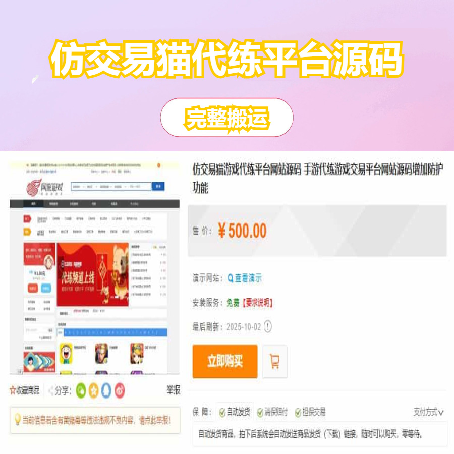 邻家铺子 行业整站 仿交易猫游戏代练平台网站源码 手游代练游戏交易平台网站源码增加防护功能 https://www.webhub.top/15548/