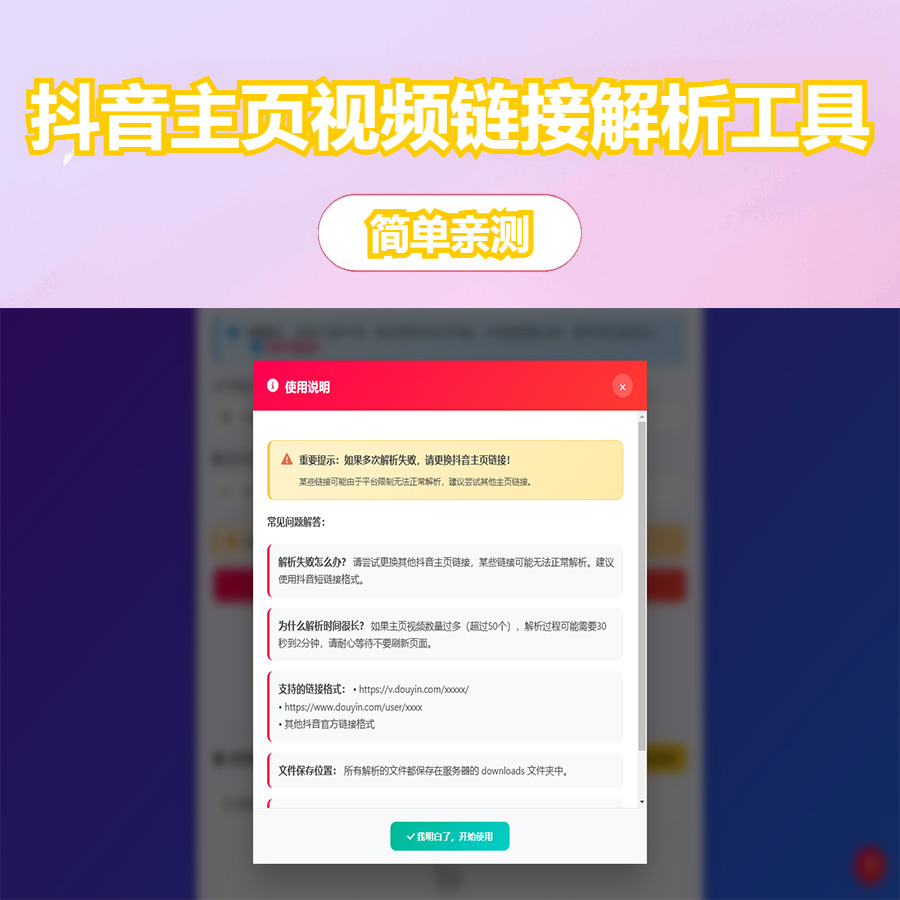 专为内容创作者设计的抖音主页视频链接解析工具,支持批量提取抖音主页所有视频链接,提供便捷的文件管理和自动清理功能。