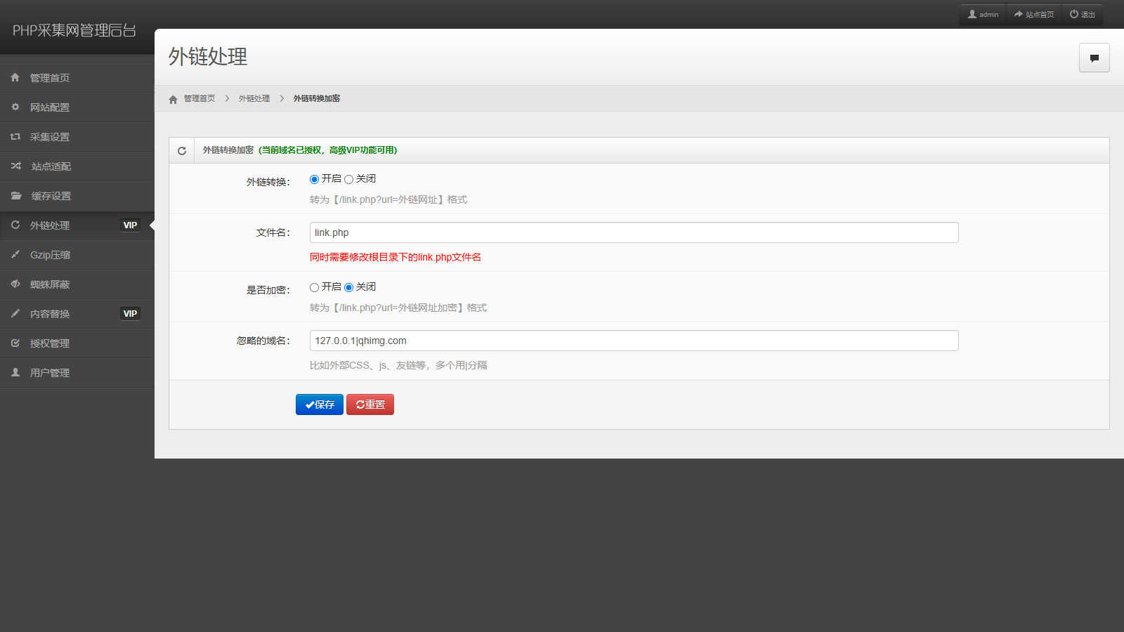 6. 内外链转换功能,网址加不加密?有些域名不想转换?都你说了算。