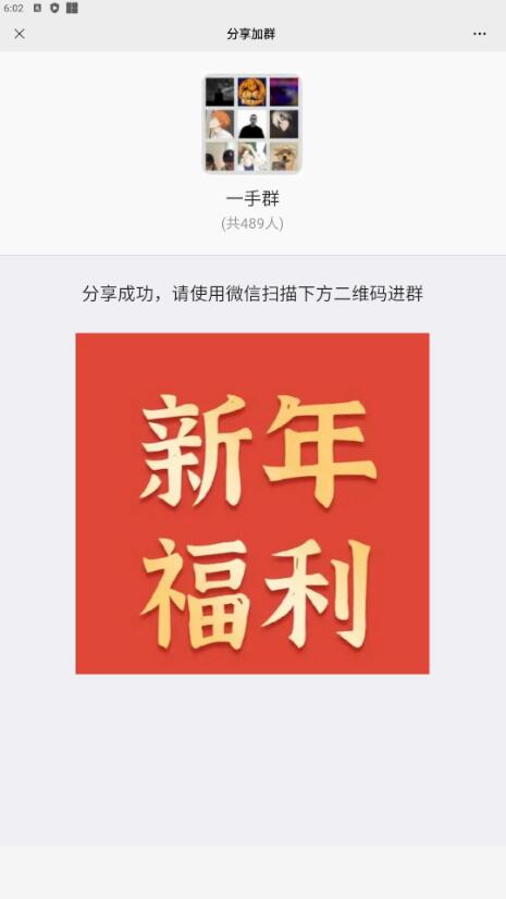 分享成功后会出现加群的二维码。扫码后即可进群。D1313